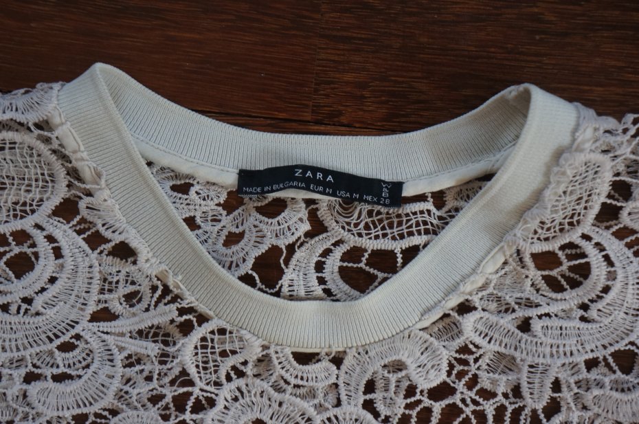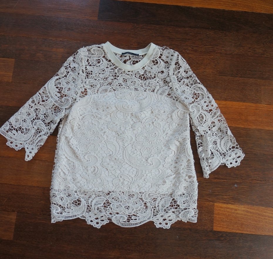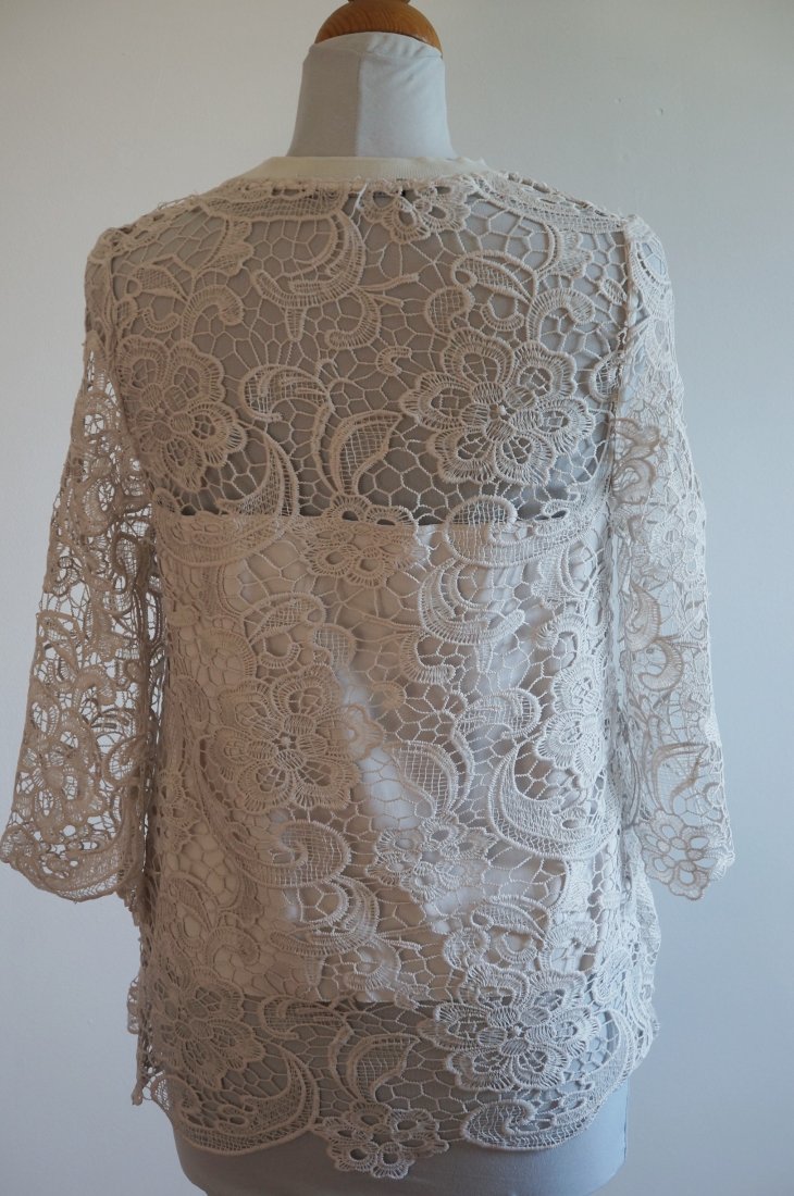 Koronkowa bluzka marki Zara. Rękaw ¾. Tułów na podszewce.