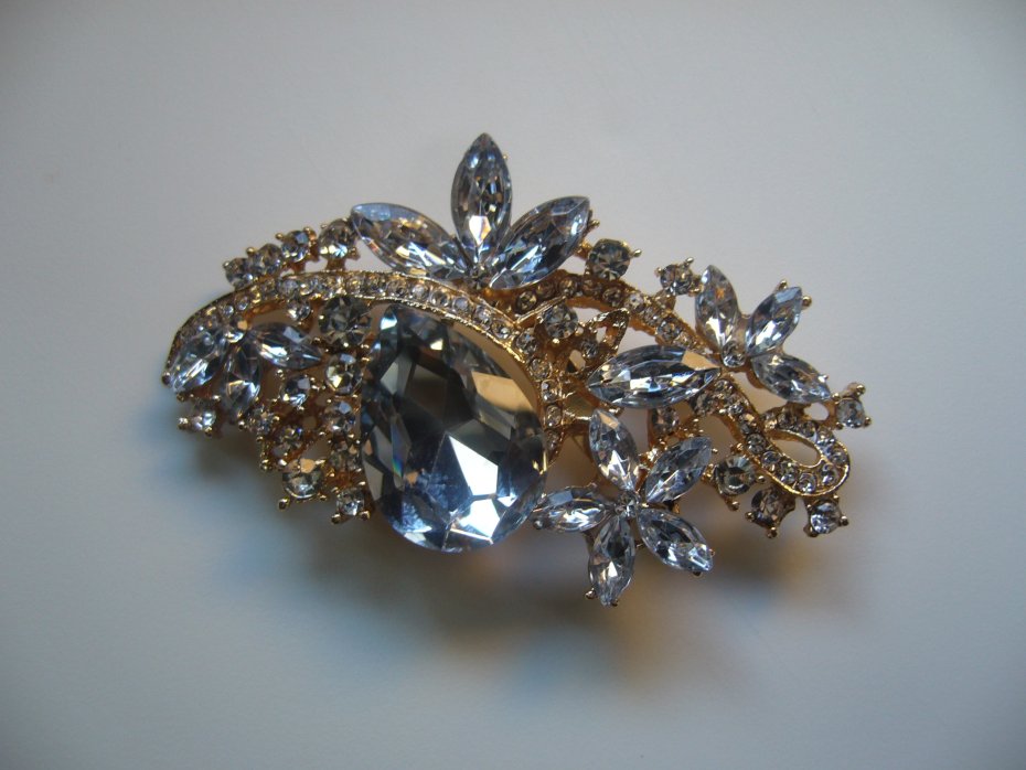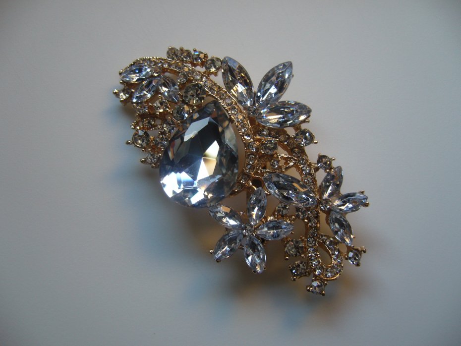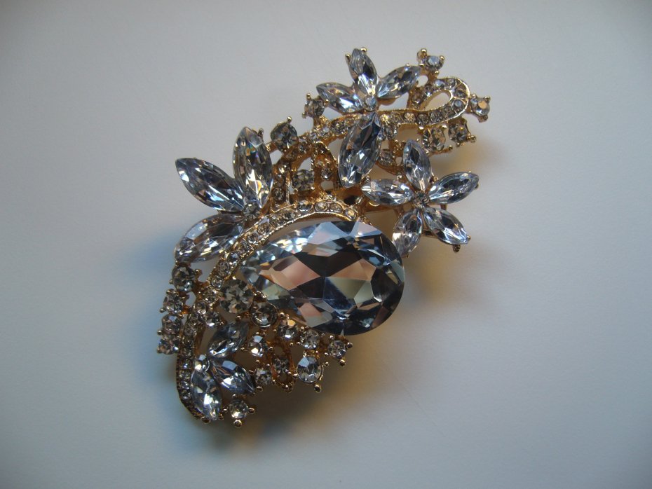 Elegancka pozłacana broszka wisior,wysadzana cyrkoniami
