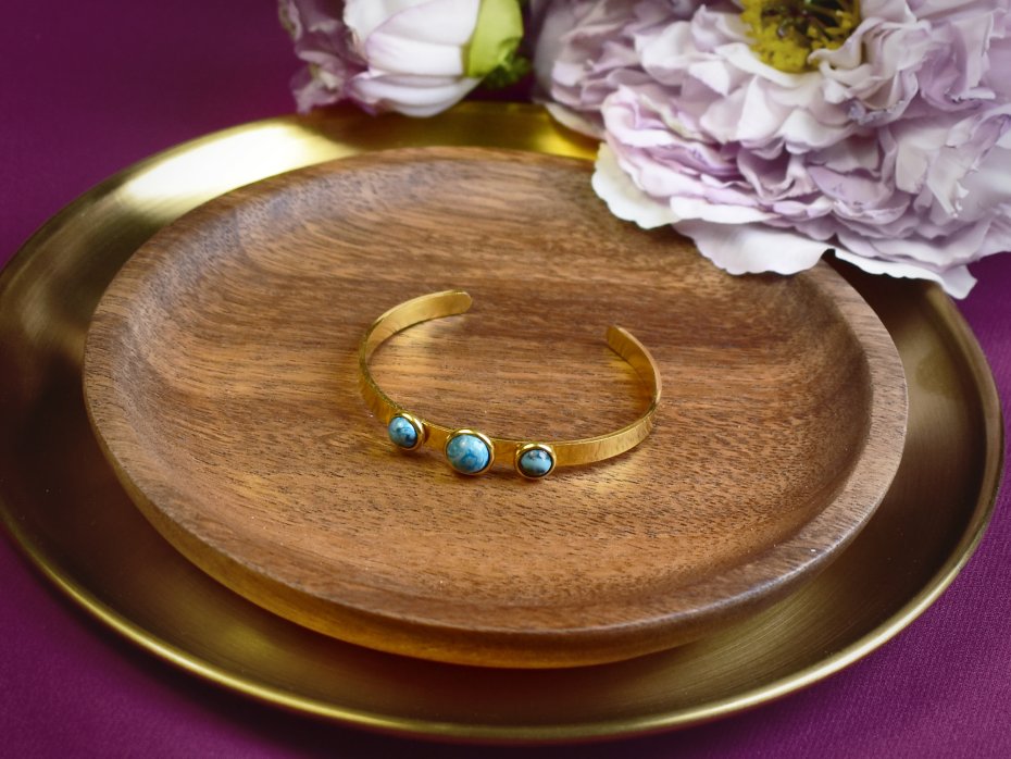 5.  > Elegancka stalowa złota bransoletka - jaspis niebieski #57 (nr 6987910)