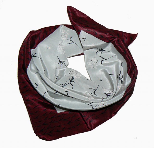 Apaszka gawroszka, brzegi bordowe, środek blado szary, cała w delikatny wzór.