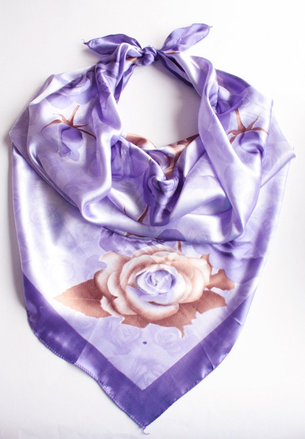 Elegancka chusta w ocdcieniach jasnego fioletu, z subtelnym satynowym połyskiem.