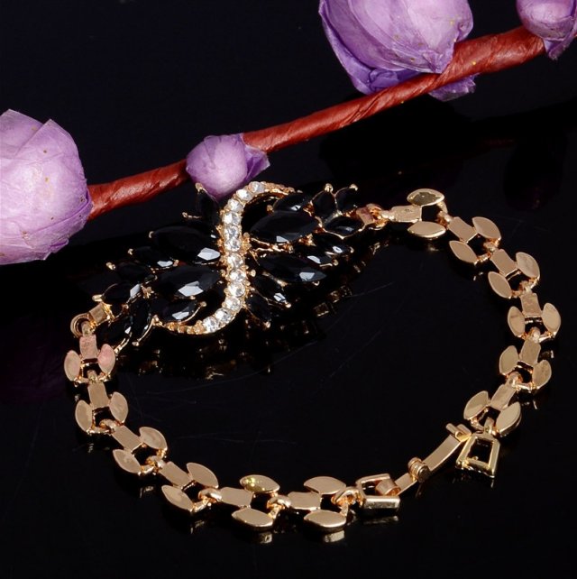 Wysadzana czarnymi kamieniami i cyrkoniami.