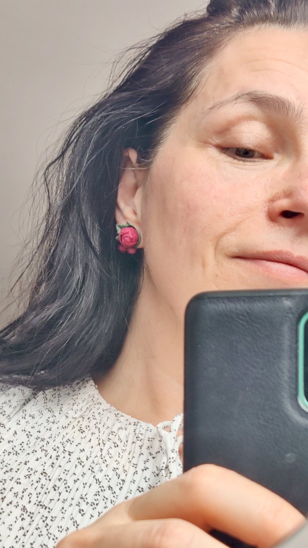 Kwiaty są wykonane z trwałej glinki polimerowej, która doskonale oddaje delikatność płatków, pozostając odporną na uszkodzenia. Mimo bogatego wyglądu, biżuteria nie obciąża uszu i jest bardzo komfortowa w noszeniu.
