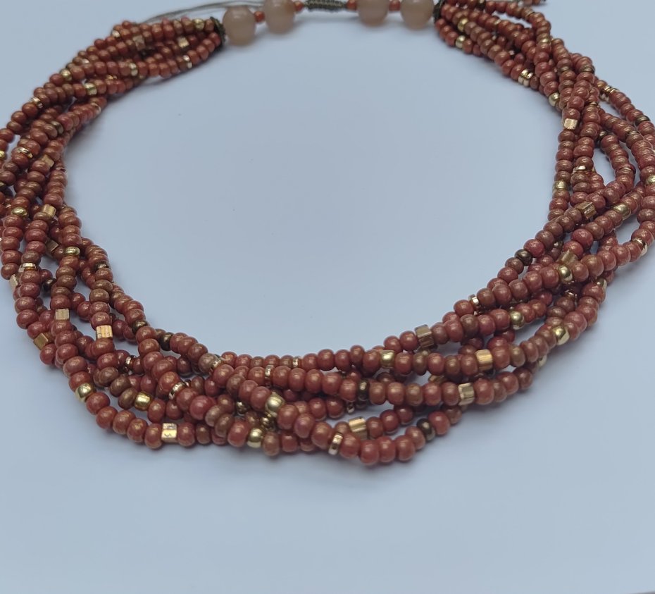 Tagi: #bizuteria hand made dla kobiet, #korale drobne na szyje, #naszyjnik korale brazowo zlote, #naszyjnik z koralików