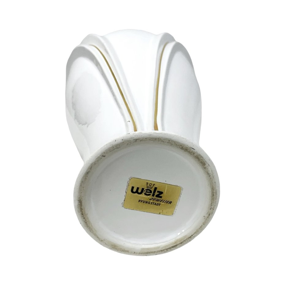 Oferuję piękny, vintage wazon porcelanowy sygnowany przez wytwórnię Welz z Pfungstadt (Niemcy). Przedmiot pochodzi najprawdopodobniej z lat 70.–80. XX wieku i prezentuje wysoki poziom rzemiosła charakterystyczny dla niemieckich manufaktur porcelany tamtego okresu.