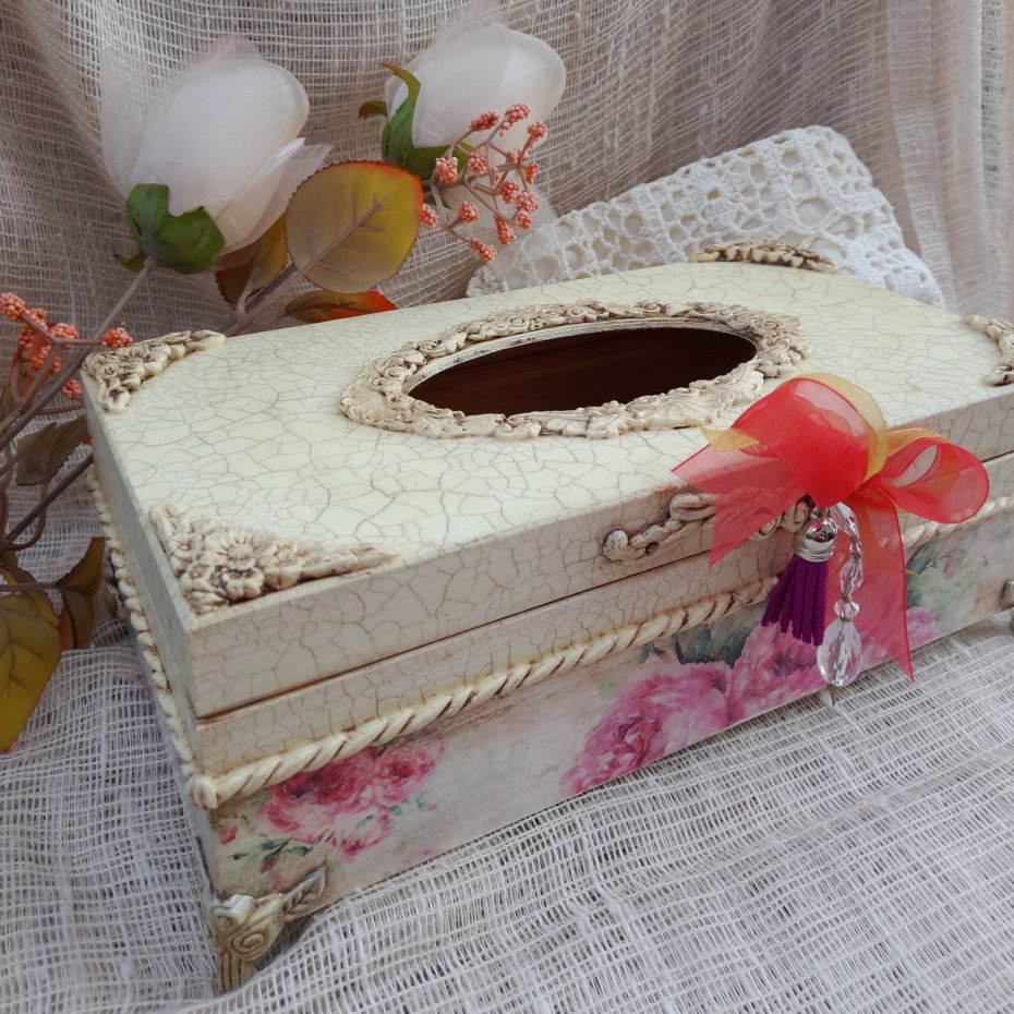 Tagi: #chustecznik decoupage, #chustecznik ręcznie zdobiony, #na chusteczki, #pojemnik shabby chic