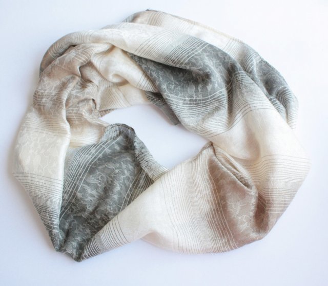 Efektowny, elegancki szal w stonowanych odcieniach, które płynnie między sobą przechodzą.