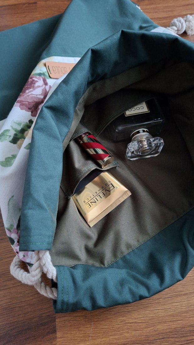 Sprytna organizacja: wewnątrz znajdziesz aż trzy praktyczne kieszonki na drobiazgi, takie jak telefon, pomadka czy ulubione perfumy, dzięki czemu wszystko będzie zawsze na swoim miejscu.