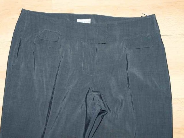 eleganckie spodnie od projektantki. Nogawka w kant. Bardzo ładne detale. Materiał wg metki 80% wełna, 18% wiskoza 2% elastar. materiał bardzo delikatny, nie przypomina wełny , a raczej jedwab, z delikatnym, eleganckim połyskiem. Stan bardzo dobry. Rozmiar z metki 40. Podaję wymiary mierzone na płasko;