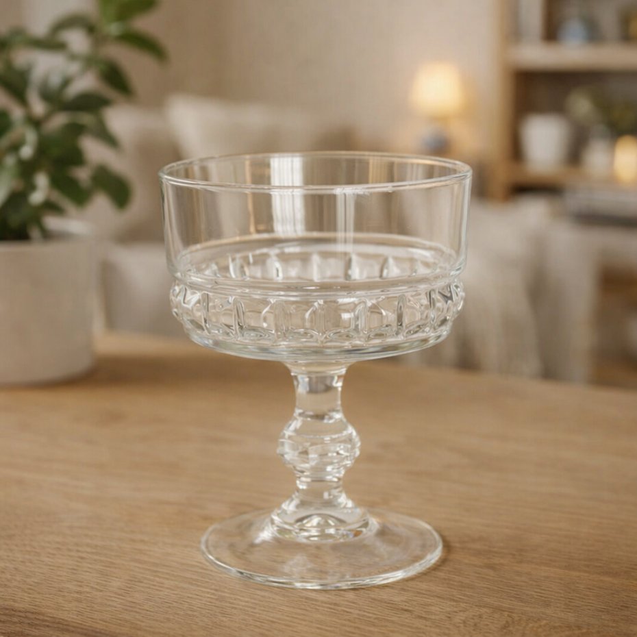 Subtelne zdobienia i dekoracyjna nóżka sprawiają, że idealnie sprawdzą się do serwowania deserów, lodów, kremów czy drinków.