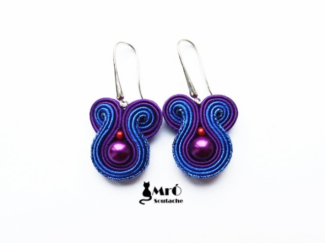 Kolczyki wykonane metodą haftu sutasz (soutache).