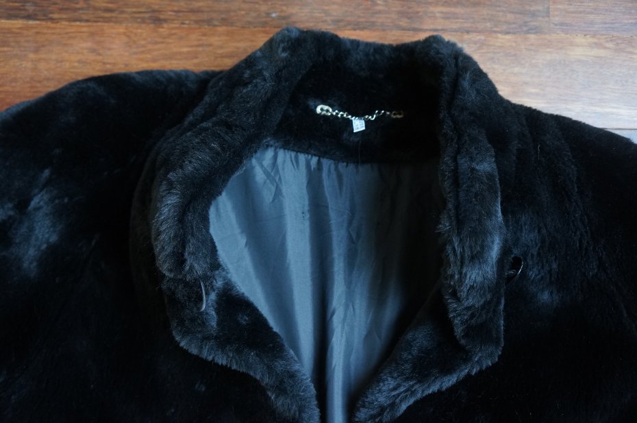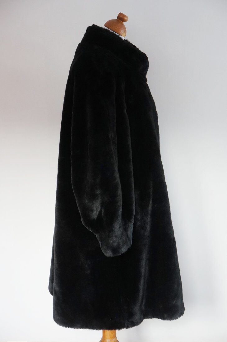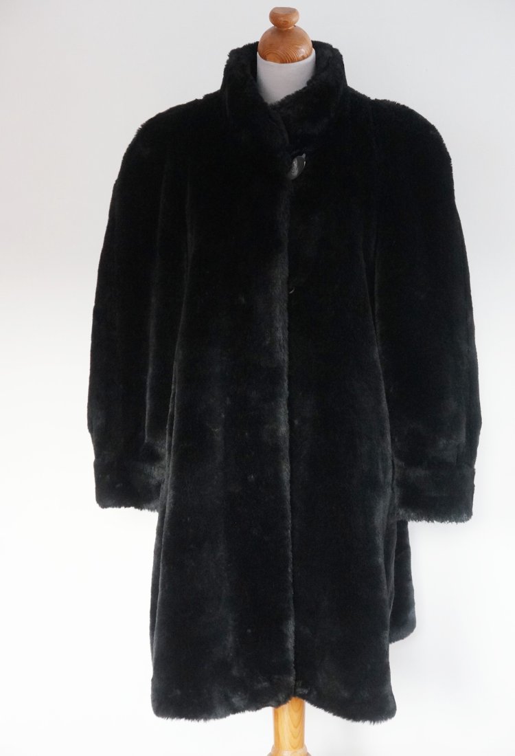 Eleganckie sztuczne futro. Całe na podszewce. Dwie wpuszczane kieszenie.