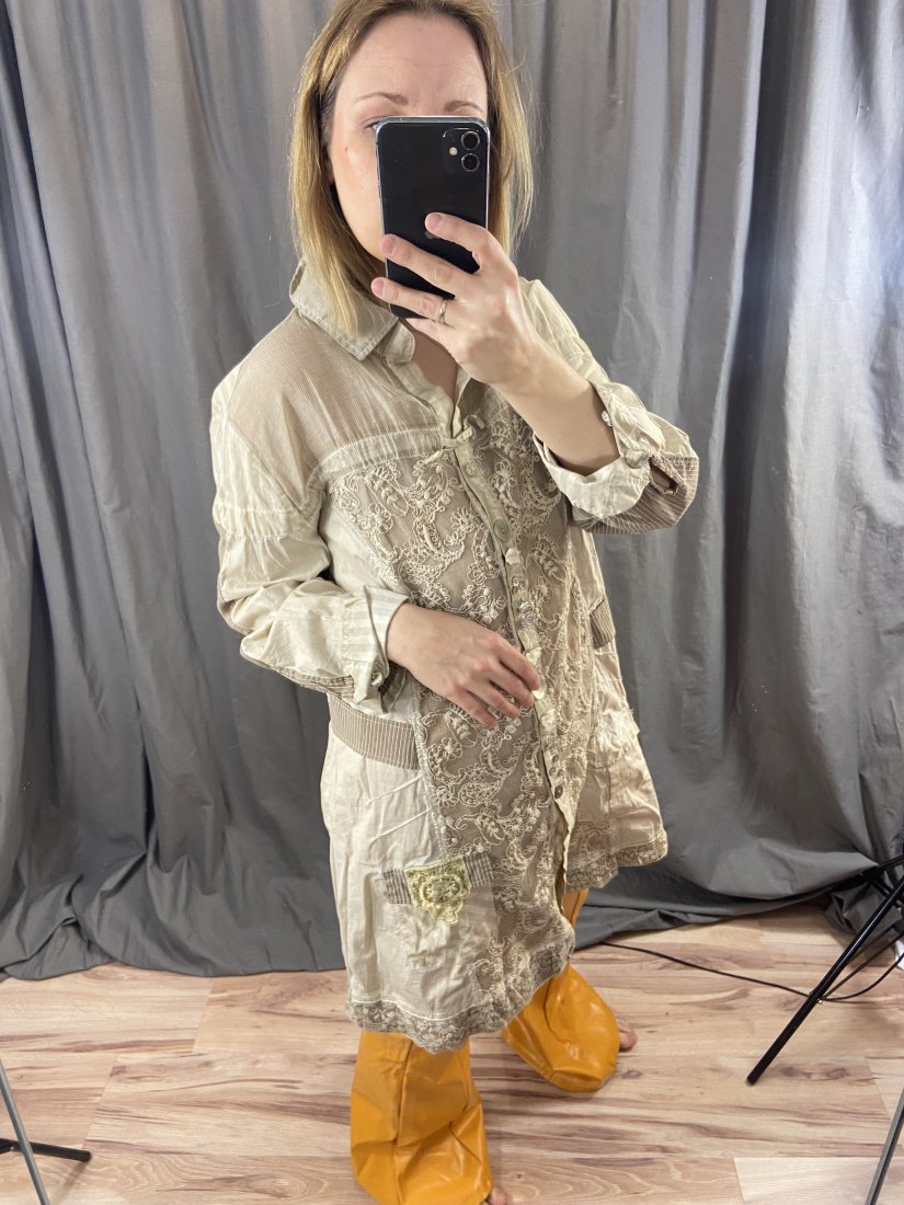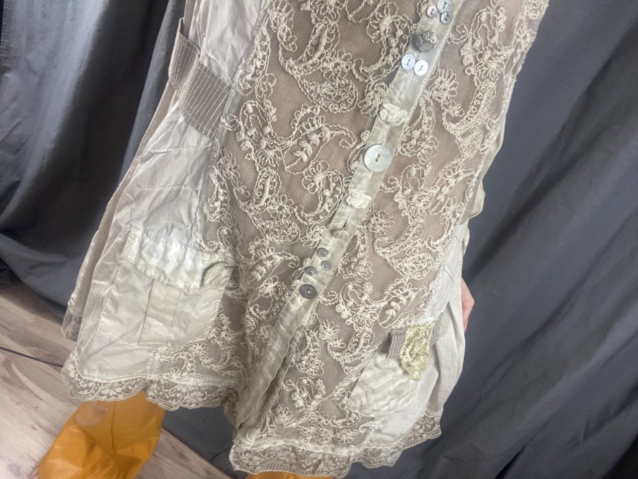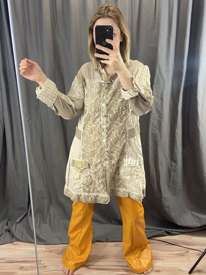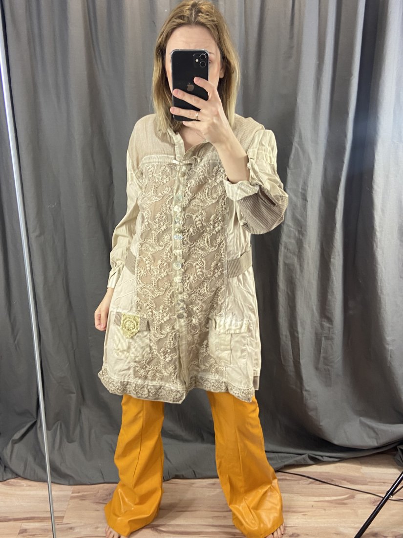Żakiet/tunika Bottega by Elisa Cavaletti. 90% bawełna, 6% jedwab, 4% elastyna. Harakterystyczny styl projektantki, Hafty, koroneczki, pastelowe, różnorodne guziki. Na żywo piękności!