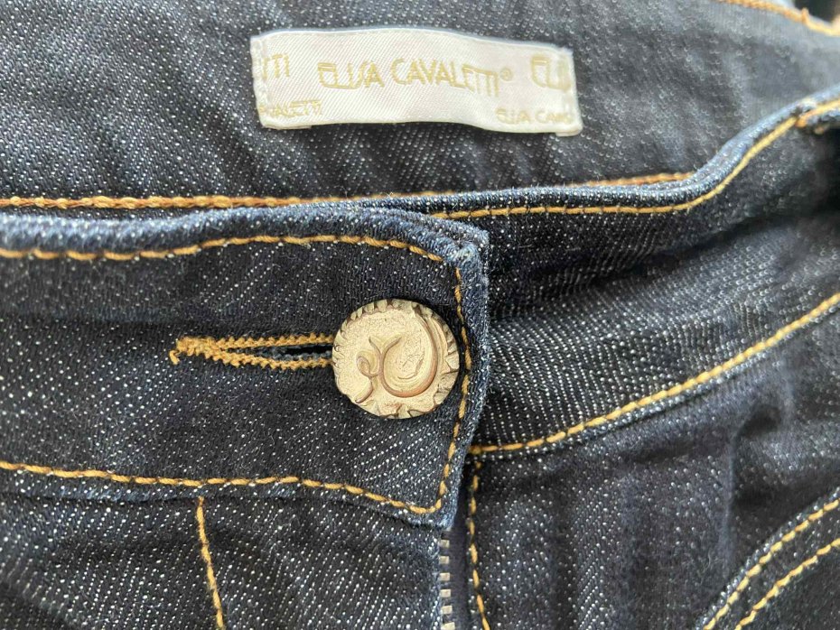 Jeansy od projektantki, Elisy Cavaletti. Bawełna z elastyną. Pięknie wykończone, z ozdonym guziczkiem i skózanymi elementami., haftem na kieszeniach. Uszyte we Włoszech.
