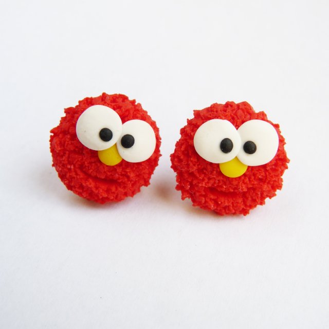 Urocze kolczyki-sztyfty z podobizną Elmo. Kolczyki zostały ulepione z masy termoutwardzalnej, ich wymiary to około 1,2x1cm. Sztyfty i baranki są srebrne ( próba 925). Kolczyki wysyłam w ozdobnym opakowaniu.