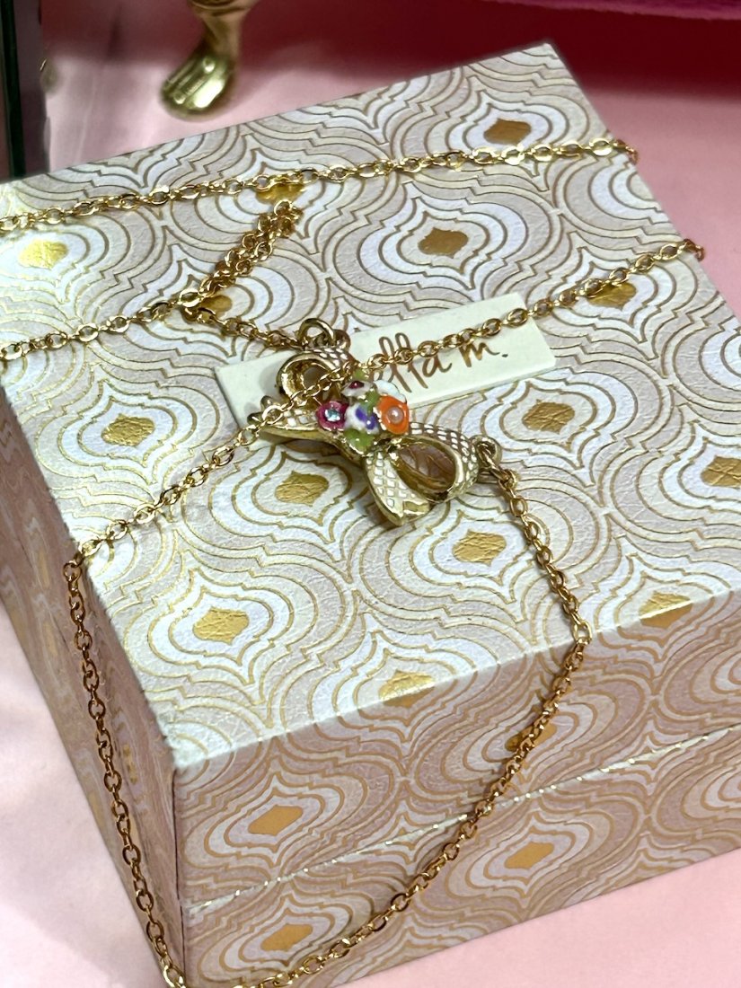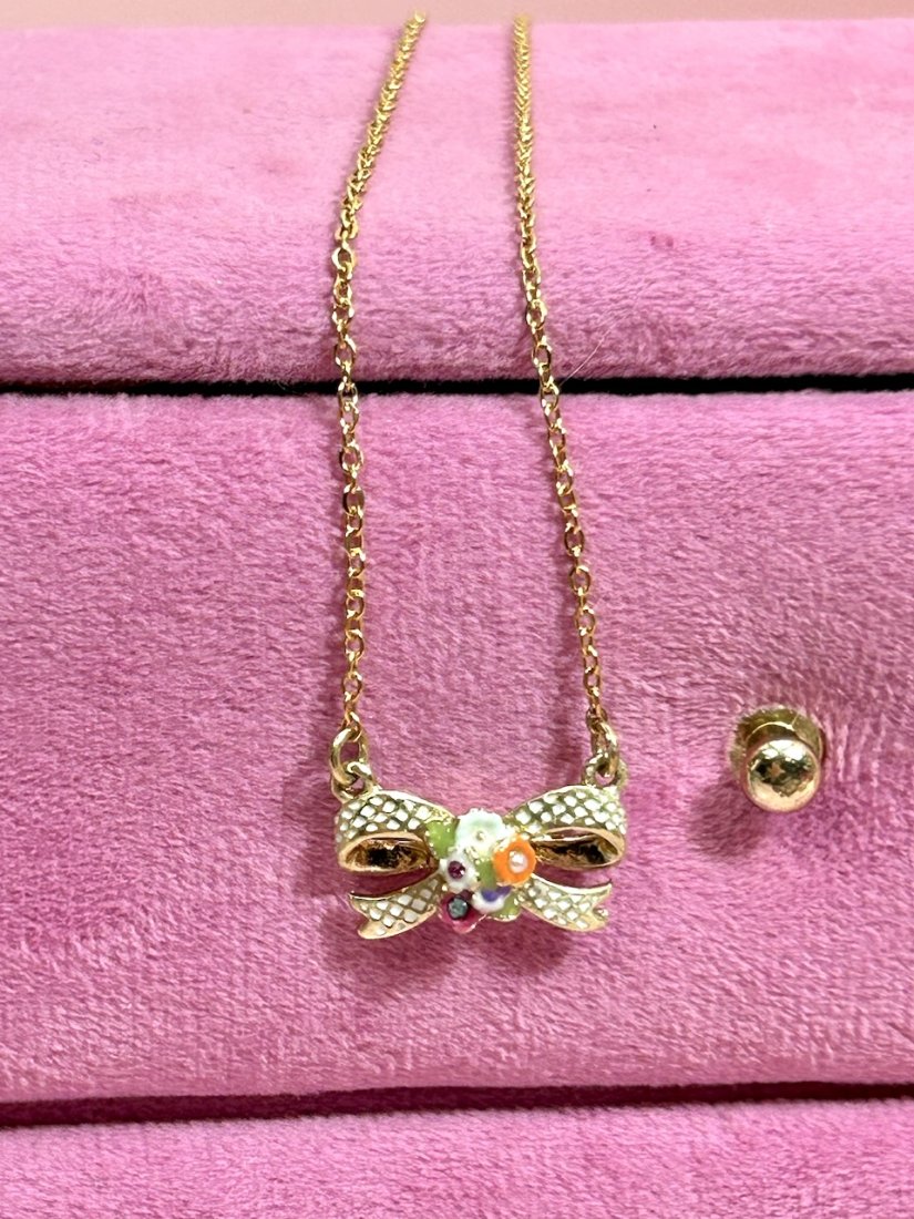 Tagi: #naszyjnik na prezent, #naszyjnik z kokardką, #piękny naszyjnik emalia, #złocony naszyjnik