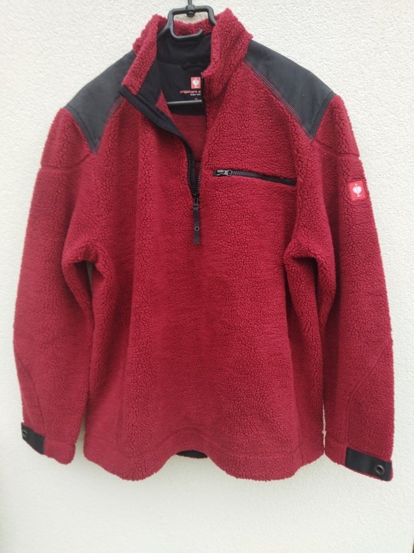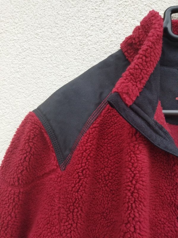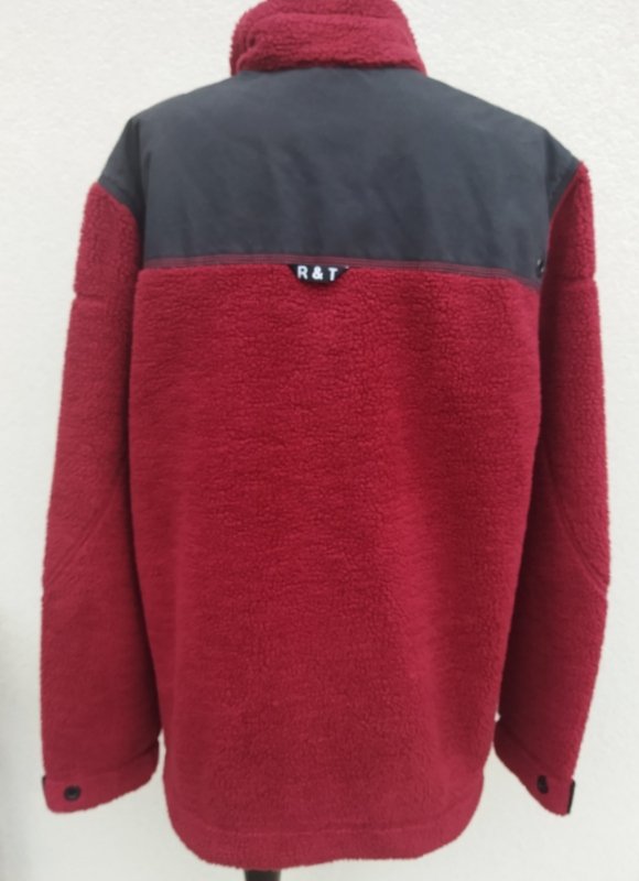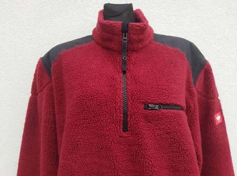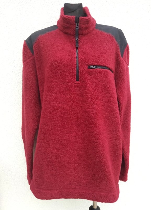 Polarowa kurtka z fakturą baranka w burgundowym kolorze . Zapinana u góry na zamek , z dwiema wpuszczanymi kieszeniami u dołu i jedną wpuszczaną u góry zapinana na zamek, mankiety rękawów z dwustopniową regulacją.