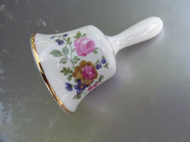 Porcelanowy Dzwonek sygnowany ASHLEYDALE Fine Bone China England.. Metalowe serce,delikatne kwiatowe zdobienie. Ciepła biel na błyszcząco wykończona. Złocenie na rantach. Ładnie zrobiona urocza rzecz :)