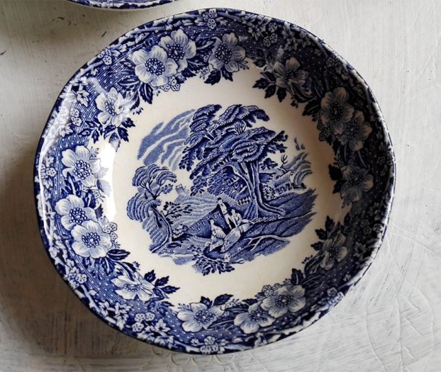 Motyw z krajobrazem angielskim, malatura niebieska, szkliwiony, sygnowany pod spodem.