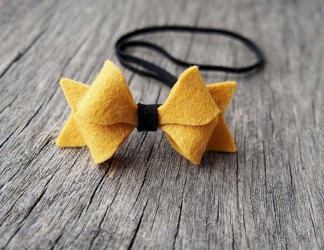 Kokardka ma wymiary3,5cm x 6 cm kolor miodowy, czarny