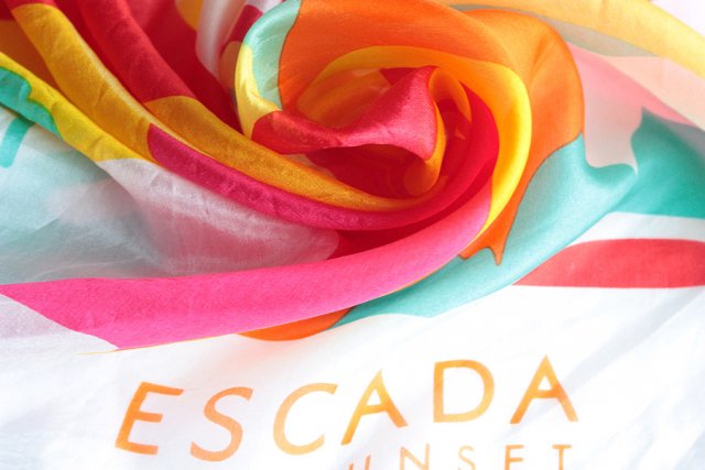Przedstawiam Państwu eskluzywną chustę luksusowej marki Escada. Wykonana z szalenie delikantego, eleganckiego materiału (moim zdaniem jest to 100% jedwab).
