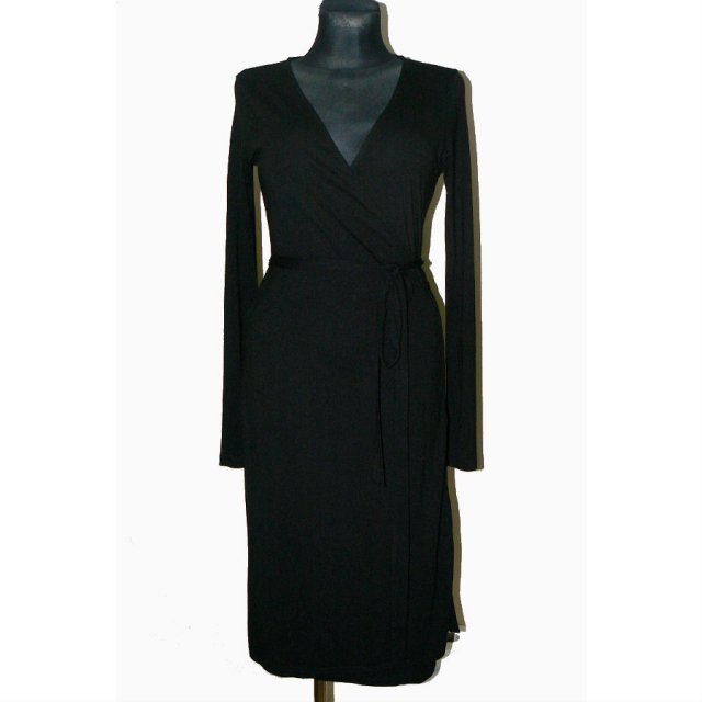 Czarna sukienka od Esprit, zakładana i wiązana kopertowo. Intensywnie czarna, z lejącego dopasowującego się materiału.
