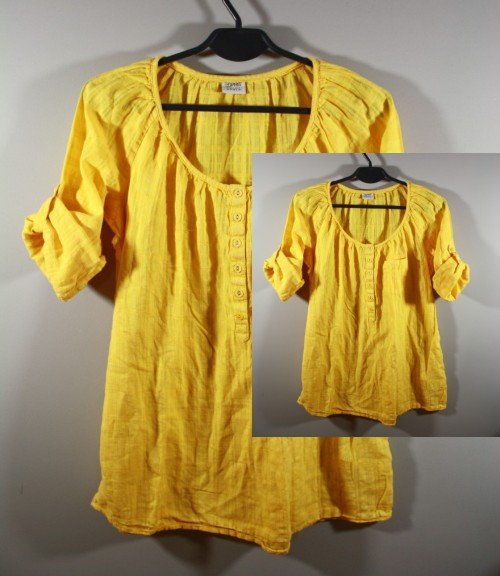 Urocza tunika o ciekawej fakturze od ESPRIT , przy dekolcie blieliżniane guziczki , jeden ostatni z logo , rękawek rol-up .