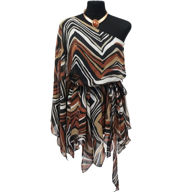 Asymetryczna sukienka w falujący wzór z dodatkiem złotej nitki