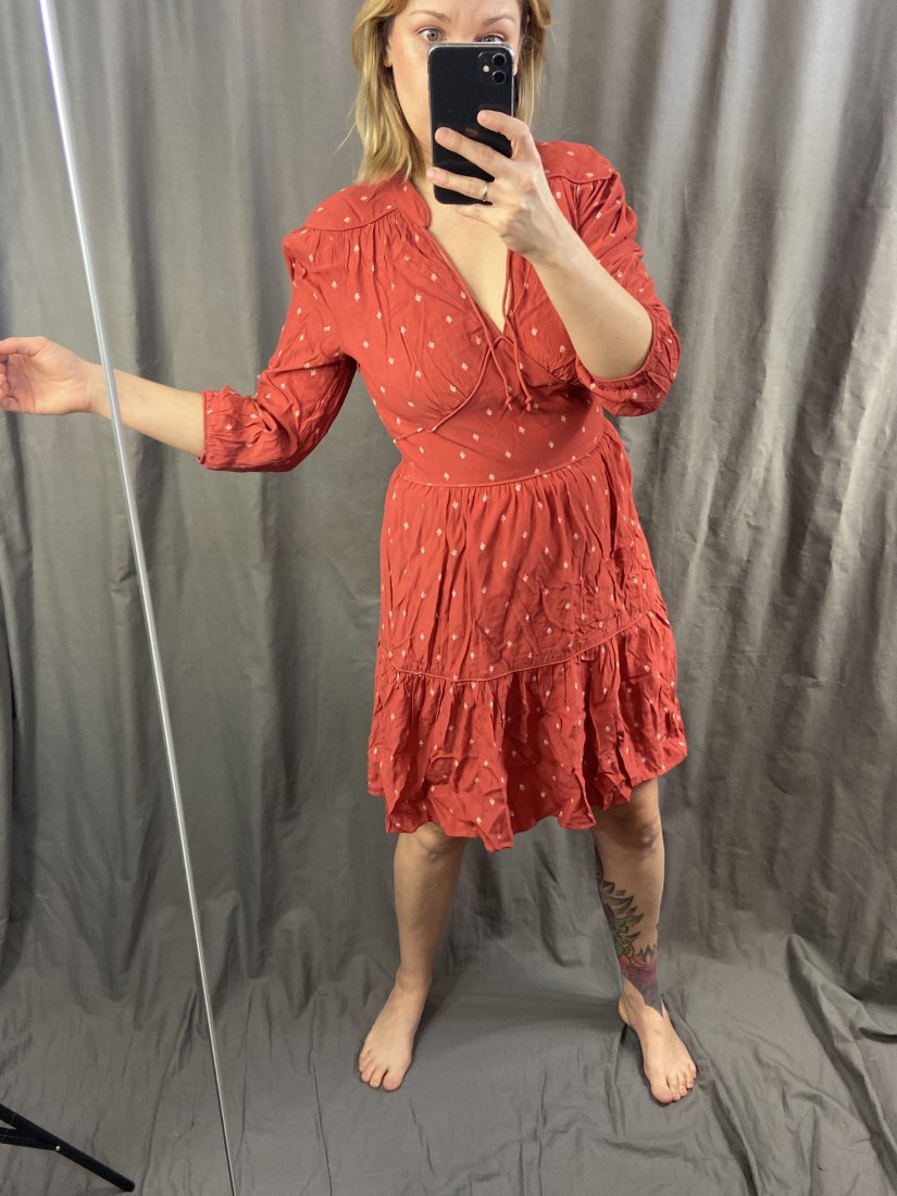 Sukienka ekskluzywnej marki Whistles. 100% wiskoza, w linii biustu wszyta cienka podszewka z poliestru. Zapinana na zamek po boku (kryty).
