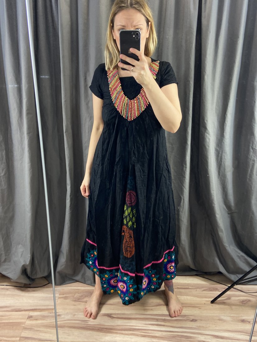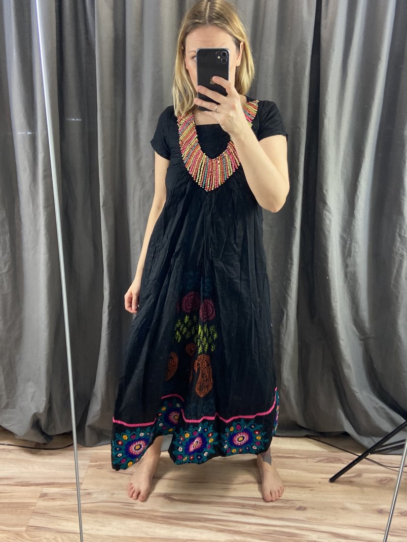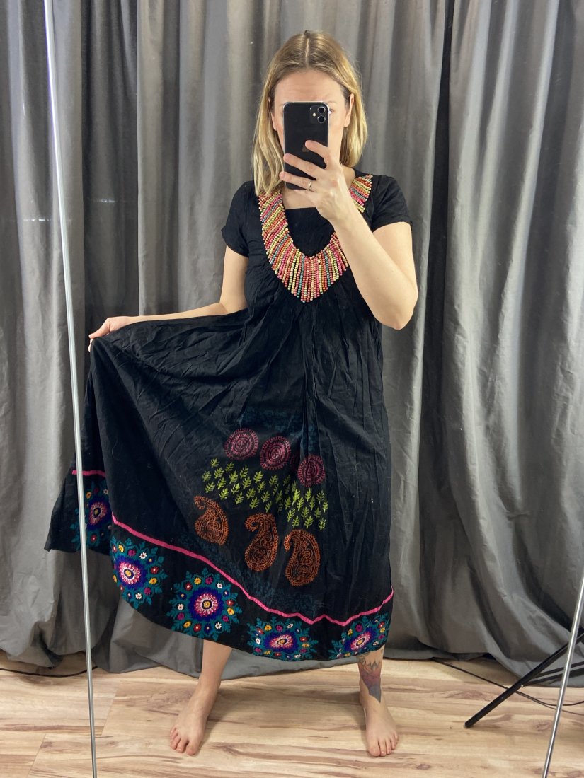 Pakistańska sukienka bawełniana, marki Origins. Góra obszyta dresniwanymi koralikami, dół haftowany.