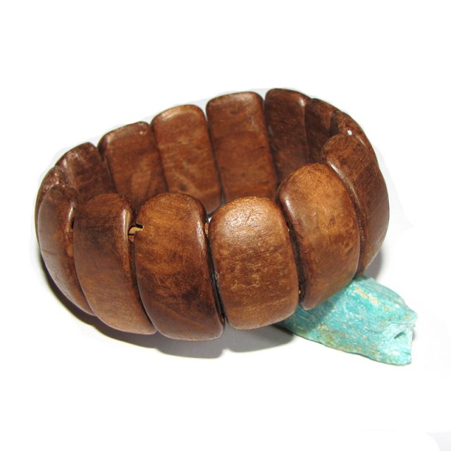 Bransoletka etniczna wykonana z drewna w kolorze brązu