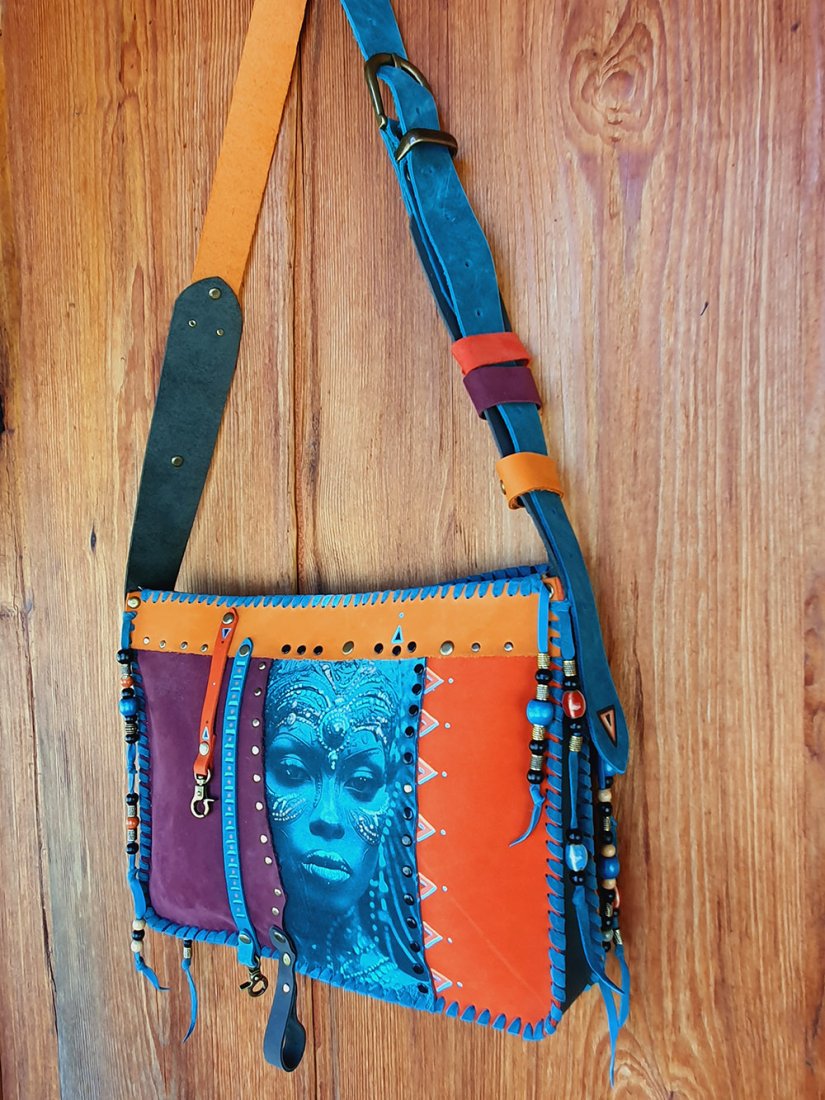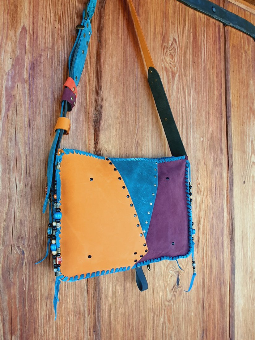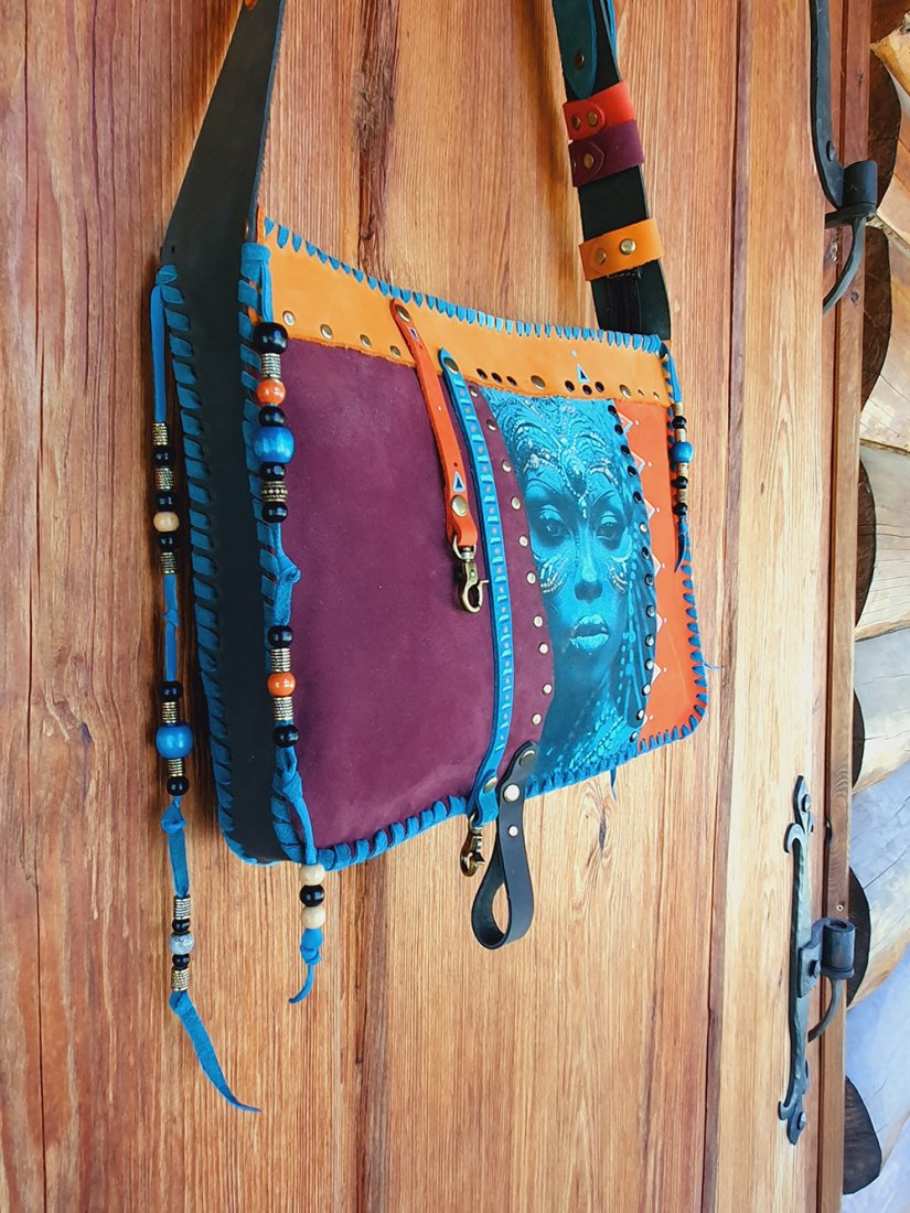Etno torebka, ręcznie wykonana ze skóry naturalnej wysokiej jakości, obuwniczej, impregnowanej (nieprzemakalnej)