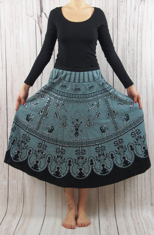 Bawełniana etno spódniczka zdobiona cekinkami.