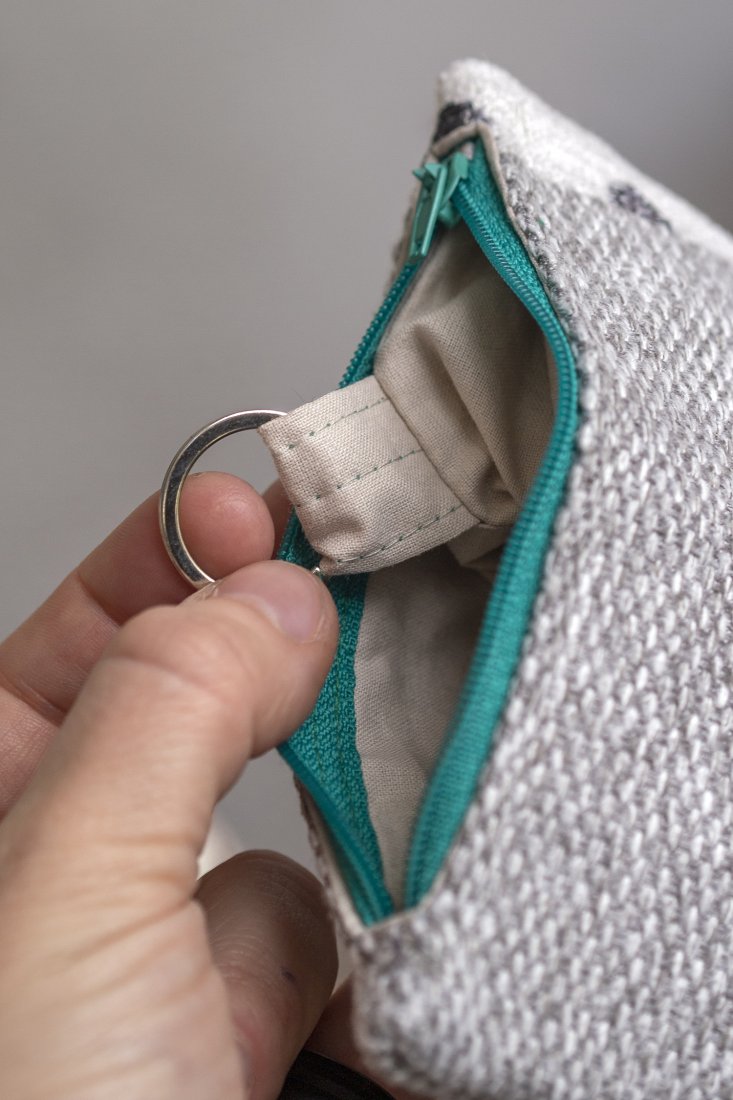 Pokrowiec w środku posiada metalowe kółko do którego można dopiąć klucze.