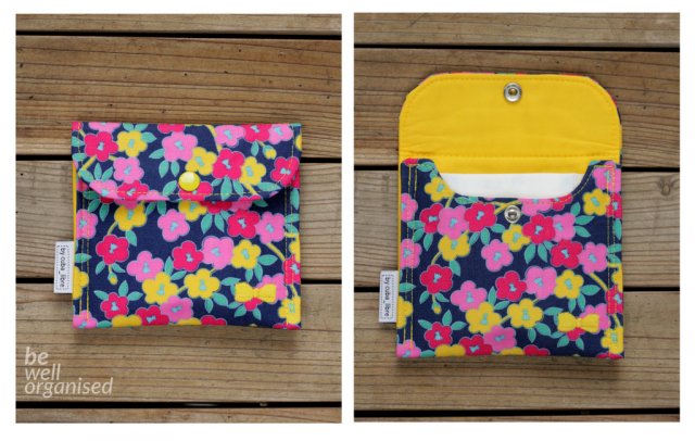 Sekretne etui na art. higieniczne do torebki :). Pomieści 2-3szt. Etui zapinane na zatrzask. Uszyte z bawełny, cienkiej ociepliny, lekko usztywnione.