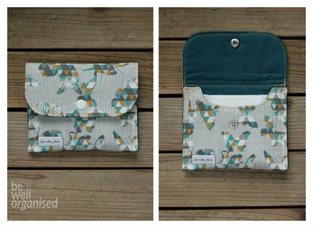 Sekretne etui na art. higieniczne do torebki :). Pomieści 2-3szt. podpasek. Etui zapinane na zatrzask. Uszyte z bawełny, cienkiej ociepliny, lekko usztywnione.