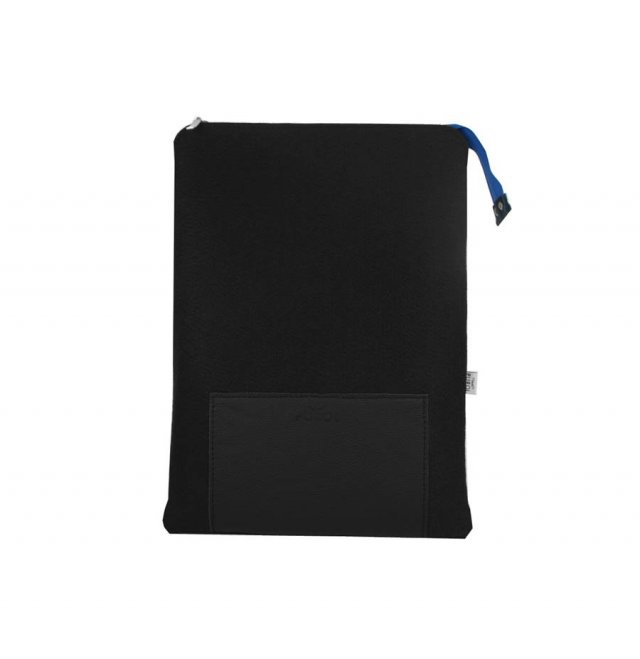 Etui z filcu - koperta na laptopa, przygotowane z czarnego filcu syntetycznego i czarnej skóry naturalnej.