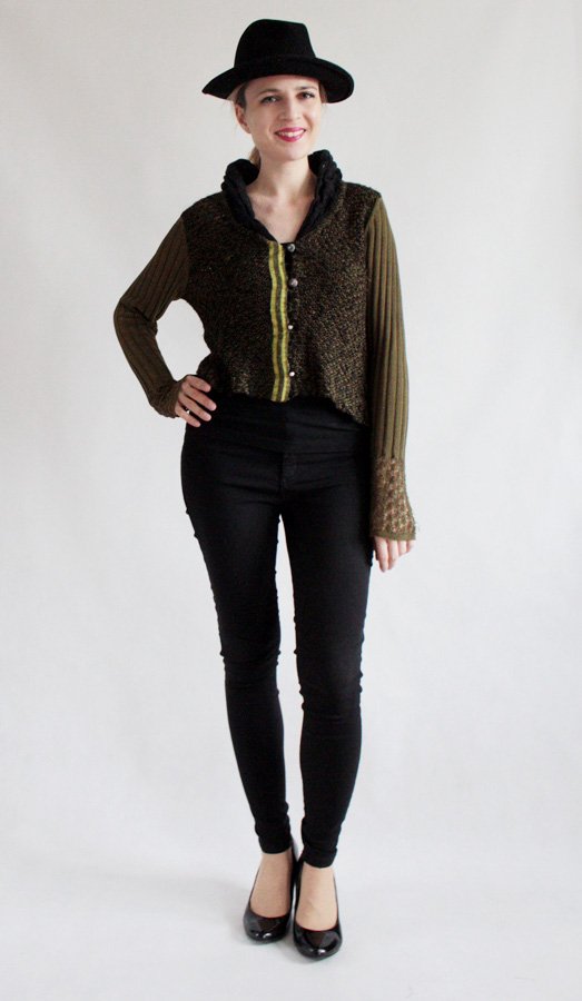 Finezyjny kardigan zapinany na różnorodne guziki. Uroku dodaje mu zdobienie dekoltu i siatkowane rękawy.