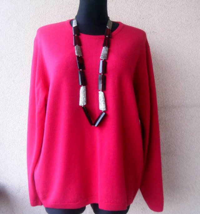 Ciepły, mięciutki sweter marki EWM, w pięknym fuksjowym kolorze, ze 100% mięciutkiej wełny owczej. Stan bardzo dobry, prawdopodobnie nieużywany. Fason prosty. Rozmiar z metki XL 22/24, ale chyba będzie lepszy dla 42. Podaję wymiary mierzone na płasko;