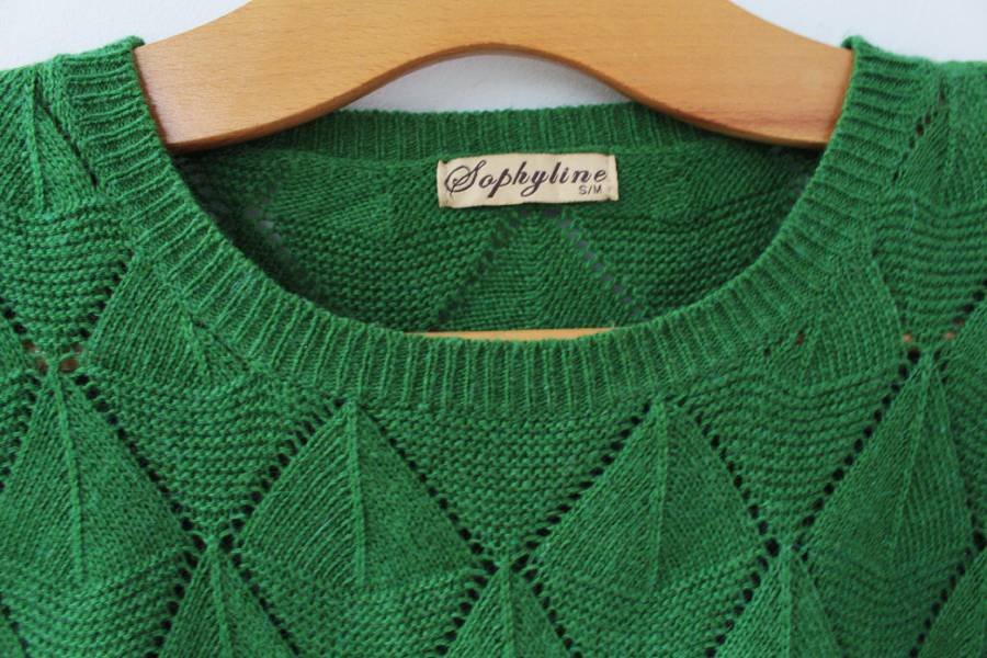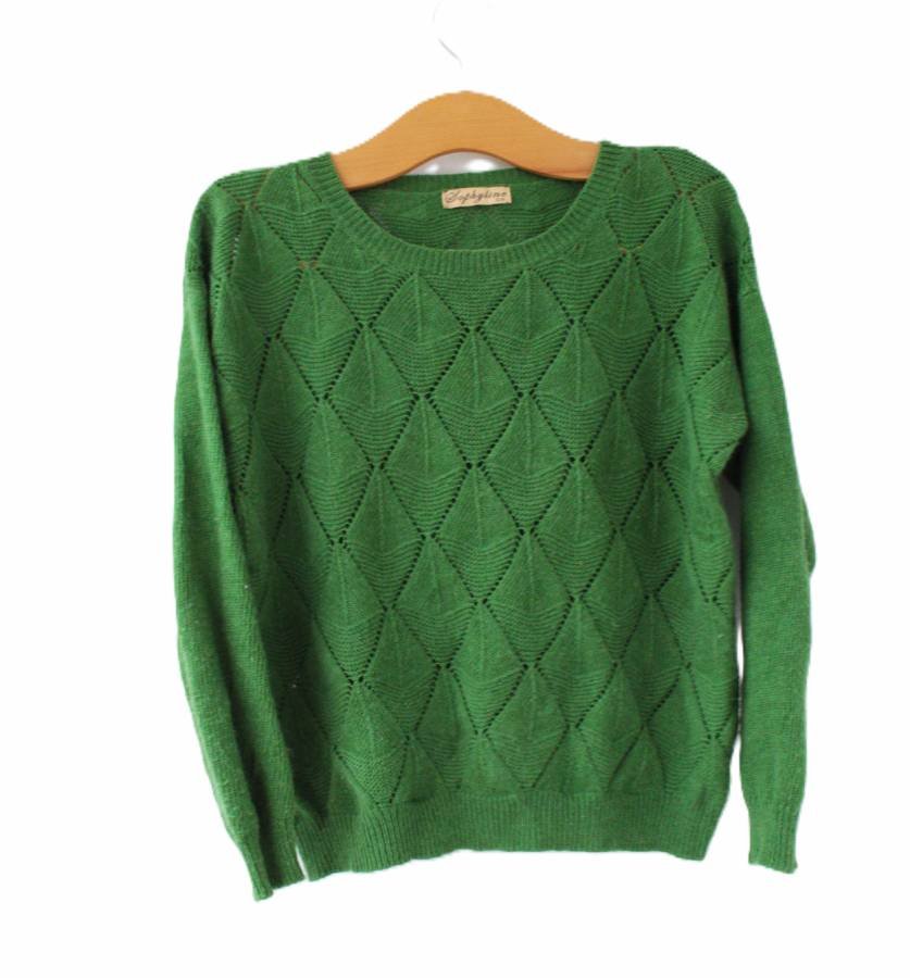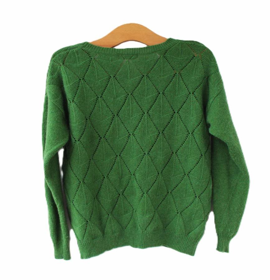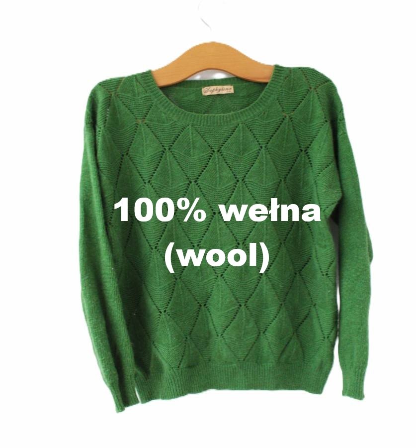 Przedstawiam Państwu zielony wełniany sweter vintage o pięknej strukturze.