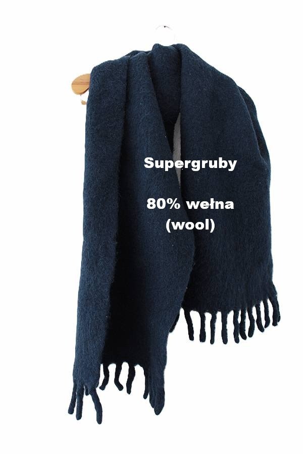 Przedstawiam Państwu unikatowy szal wełniany vintage - bardzo gruby, efektowny, z grubymi jak palec frędzlami (na zdjęciu poglądowo długopis normalnych rozmiarów dla porównania grubości frędzli.
