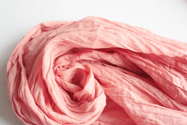 Przedstawiam Państwu szal z bawełny o szalenie oryginalnej, marszczonej fakturze. Szal ekskluzywnej skandynawskiej marki Plus Fine. Ciekawy morelowy kolor ożywiający stonowane stylizacje.