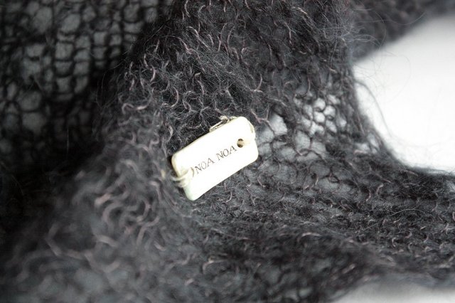 Przedstawiam Państwu ażurową chustę w odcieniu ciemnego granatu renomowanej firmy Noa Noa. Chusta posiada trójkątny kształt, dzięki czemu można stylizować ją na kilka sposobów. Uroku dodaje "metka" z masy perłowej na jednym z rogów.