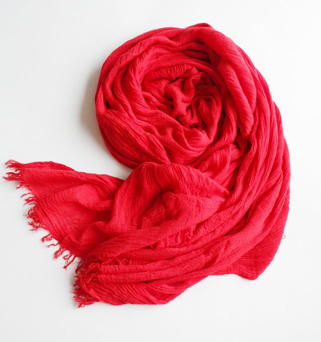 Przedstawiam Państwu duży we wspaniałym odcieniu nasyconej czerwieni. Miękki w dotyku, miły, lekko marszczony materiał. Ciekawy fason.