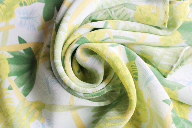 Przedstawiam Państwu wspaniałą chustę roślinne wzory wykonaną w stu procentach z jeleganckiego, naturalnego edwabiu. . Brzegi są rolowane.