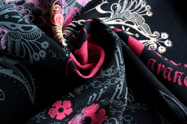 Przedstawiam Państwu ekskluzywną jedwabną chustęw rockowe wzory. Ręcznie rolowane brzegi. Chusta luksusowej duńskiej projektantki Charlotte Sparre specjalizującej się w projektowaniu szali i chust.