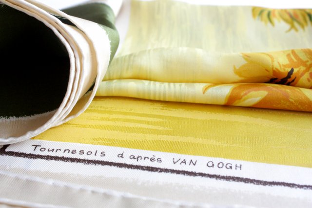 Przedstawiam Państwu ekskluzywną chustę z naturalnego jedwabiu, wykonaną w Szwajcarii. Chusta przedstawia reprodukcję obrazu Van Gogha.