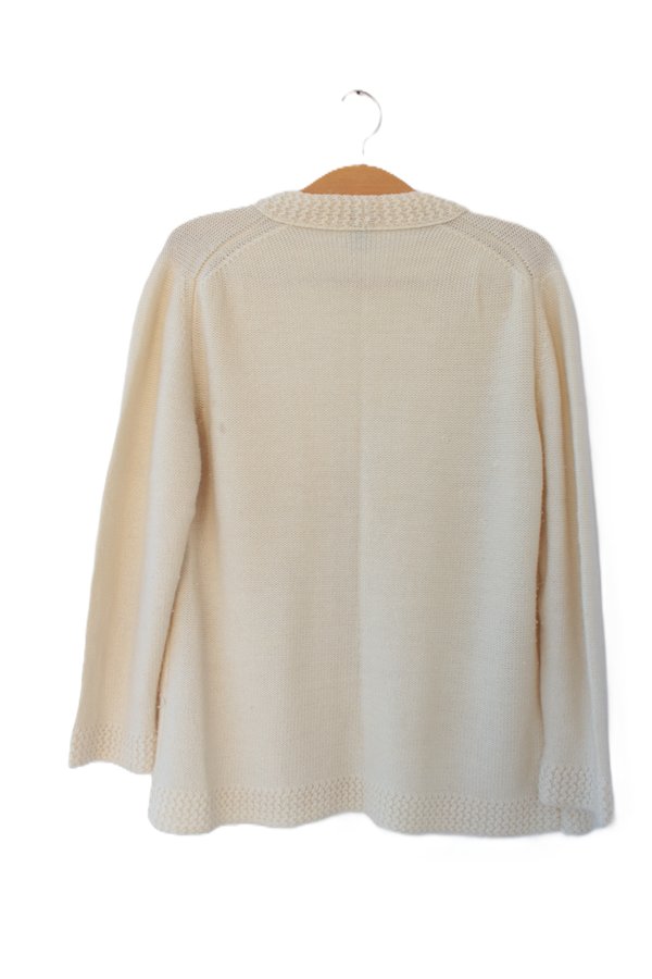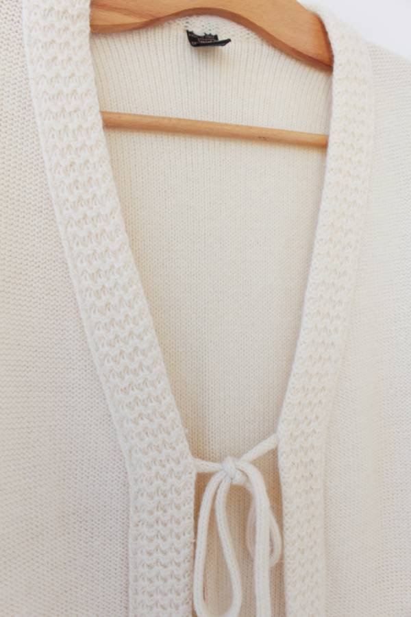 Przedstawiam Państwu kardigan wełniany vintage z wiązaniem, produkcji włoskiej. Kolor ecru.