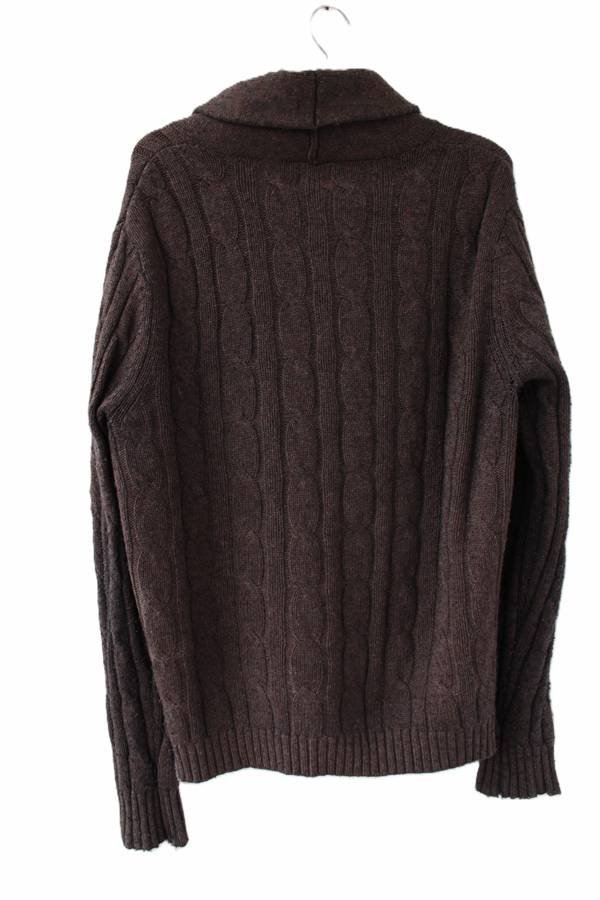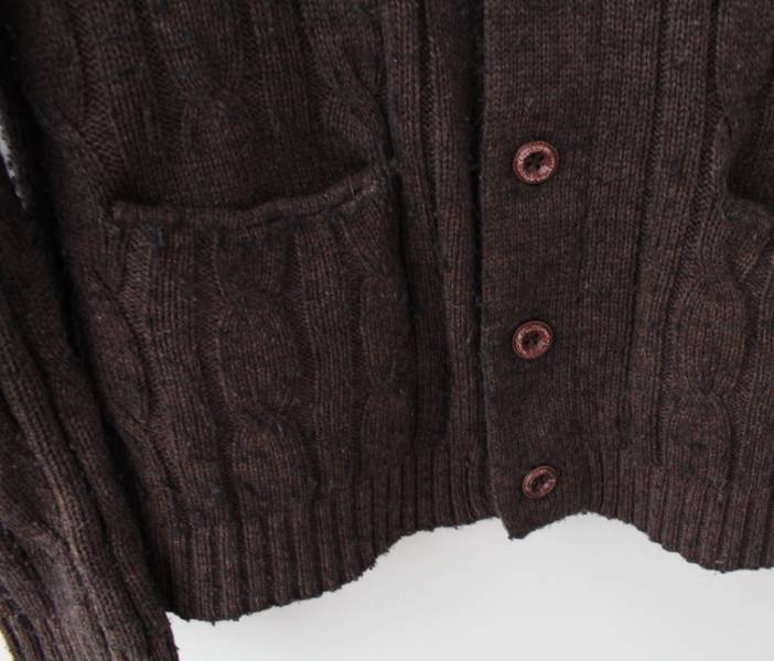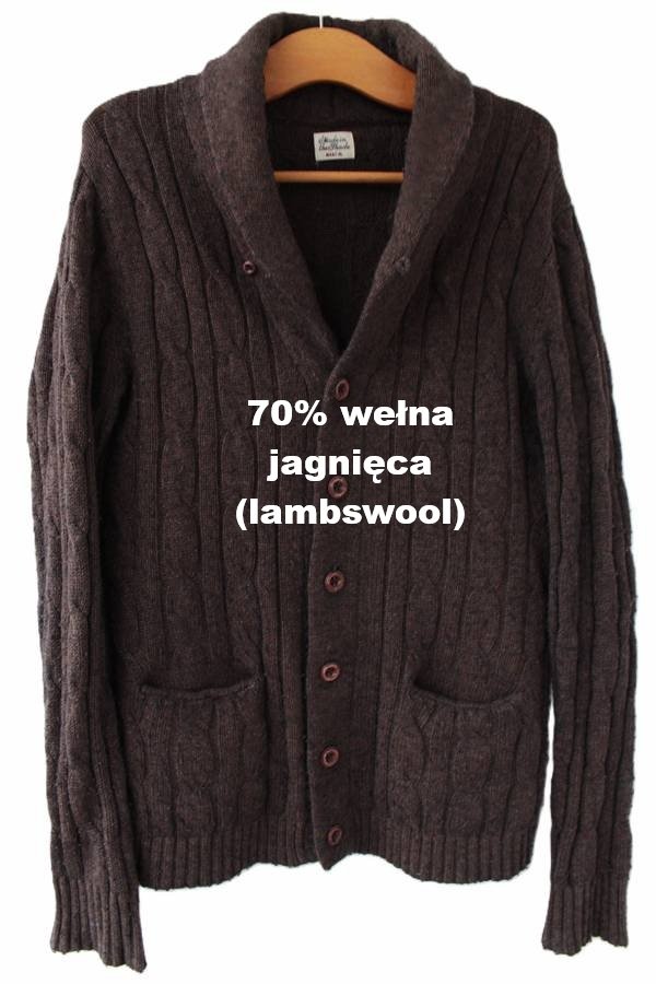 Przedstawiam Państwu ciepły brązowy kardigan vintage z wełny z domieszką syntetyku. Strona zapięcia wskazuje, że jest to sweter męski. Stan bardzo dobry.