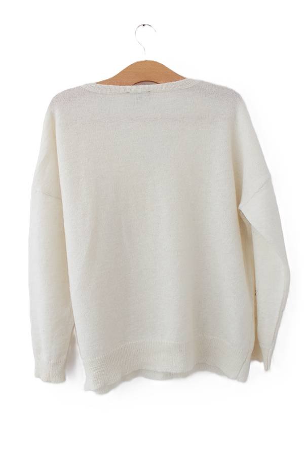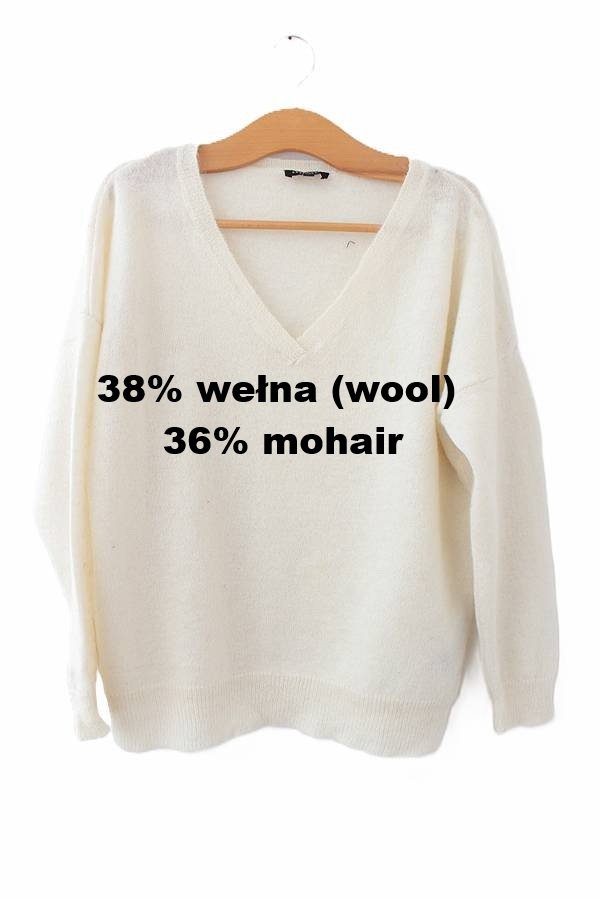 Przedstawiam Państwu kremowy sweter vintage o puszystej strukturze dzięki moherowi i wełnie w składzie.